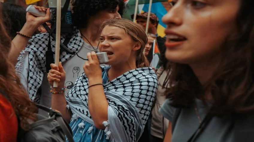 Greta postou um vídeo no Instagram acompanhada de outras ativistas. Na publicação, a sueca afirma que se trata da maior iniciativa de “romper o bloqueio israelense sobre Gaza com dezenas de embarcações”.