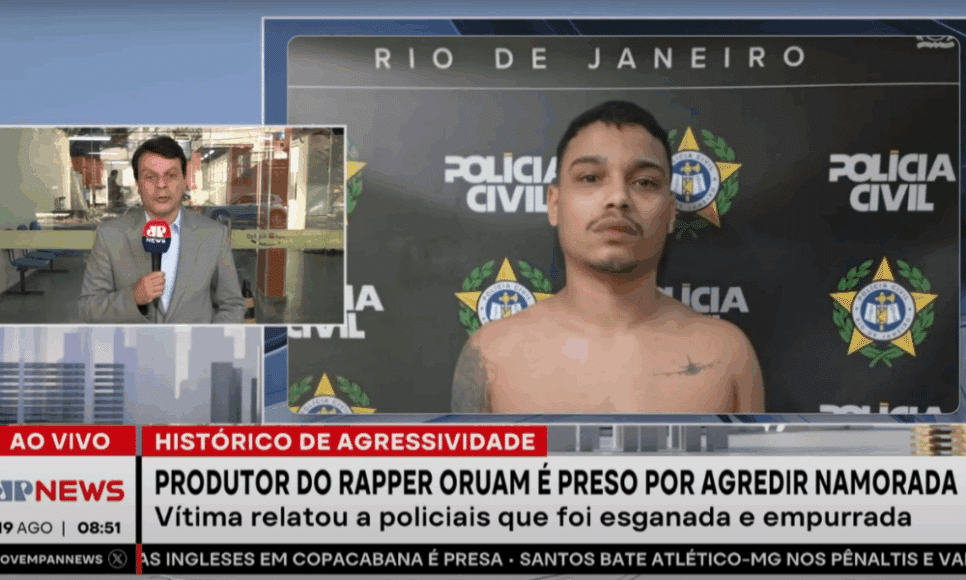 A Polícia Civil do Rio de Janeiro deteve o produtor musical Leandro de Souza Almeida da Silva Filho, de 26 anos, também chamado Leandrinho, que colabora com o rapper Oruam. A detenção ocorreu na Baixada Fluminense, após a denúncia de agressão por parte de seu namorado. A vítima buscou atendimento médico e, em seguida, registrou o boletim de ocorrência na delegacia, sob a égide da Lei Maria da Penha. Ela informou aos policiais que sofreu esganadura e empurrões, além de ter sido alvo de ofensas e múltiplas ameaças.