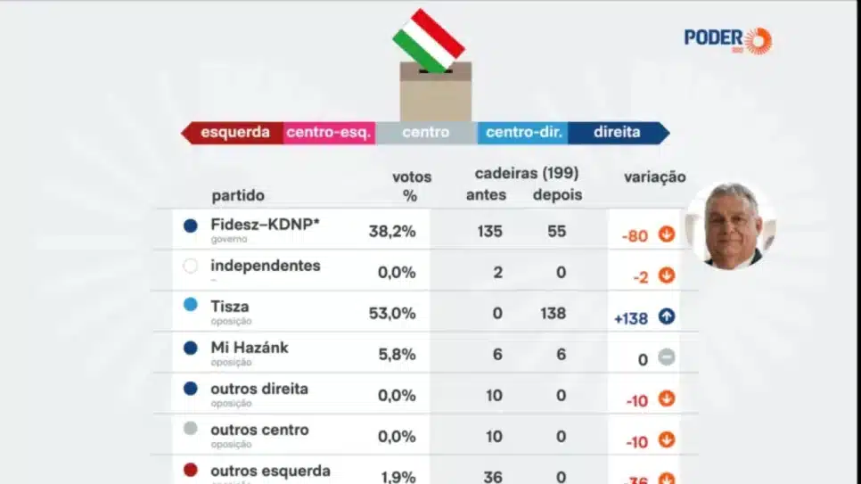 Essa nova configuração representa uma inversão em relação ao cenário de 2022, quando o Fidesz detinha 135 das 199 cadeiras do Parlamento, com cerca de 54% dos votos de lista nacional.