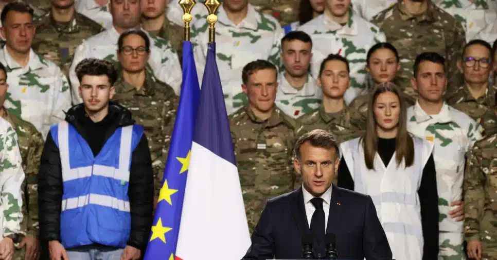 Macron descartou a reintrodução do serviço militar obrigatório, que foi abolido em 1996. No entanto, ele mencionou que, em situações excepcionais, o Parlamento pode considerar a obrigatoriedade do serviço para jovens com habilidades específicas identificadas em cursos de defesa.