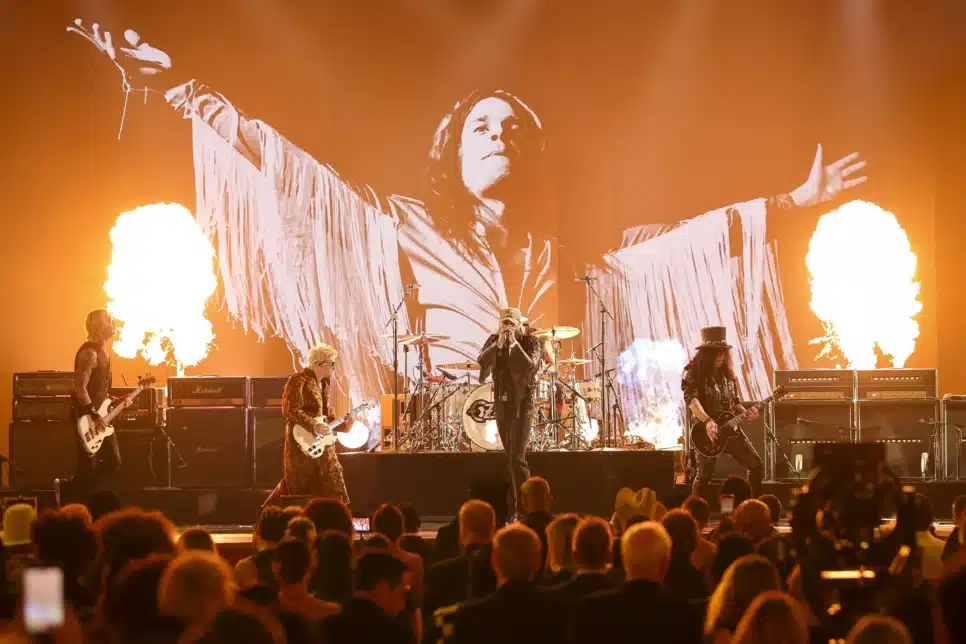 No tributo a Ozzy Osbourne, lendas do rock se uniram no palco para interpretar “War Pigs”, do Black Sabbath. A performance foi realizada por Post Malone, acompanhado por Slash, Andrew Watt, Chad Smith, do Red Hot Chili Peppers, e Duff McKagan. A apresentação emocionou a família de Ozzy, que aplaudiu de pé, visivelmente tocada pela homenagem.