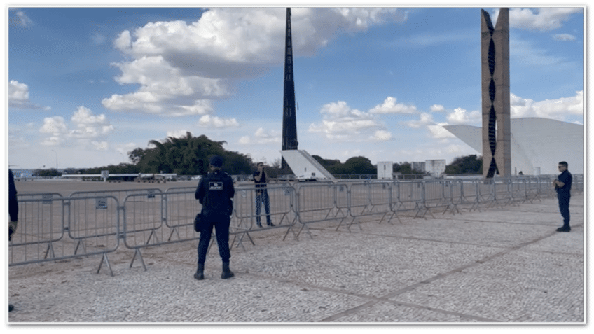 Sozinho, Felipe de Deus, como se identificou, proferiu gritos de “fora, Moraes” e “chega de tanta injustiça”. Também afirmou que “há crianças condenadas de 17 anos que nunca passaram pela delegacia” e que “ex-governador condenado há 17 anos por corrupção está em liberdade”.