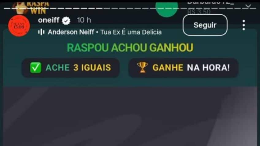 A Neiff possui 9,3 milhões de seguidores. Prints feitos de seus stories às 8h02 desta 6ª feira (15.ago) mostram o conteúdo compartilhado. É possível ver a logo de “raspa win” e o endereço eletrônico da bet nas imagens. Por volta das 9h30, os posts já não estavam mais disponíveis. Não é possível dizer se o próprio artista apagou ou se foi uma ação da Meta, dona do Instagram.