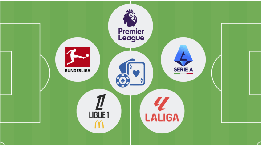 Nas temporadas 2025/2026, as casas de apostas se destacam como patrocinadores principais dos clubes que competem nas principais ligas europeias: Premier League, Serie A (Itália), La Liga (Espanha), Ligue 1 (França) e Bundesliga (Alemanha).