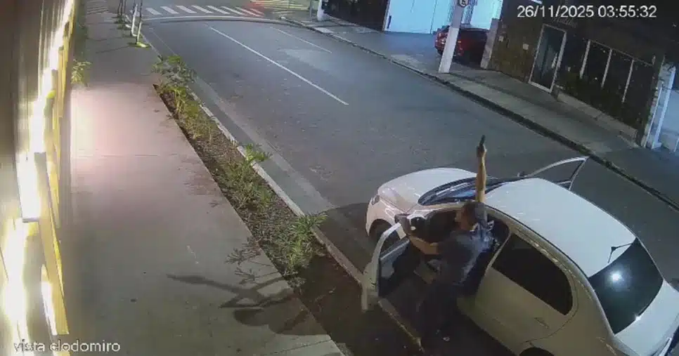 Após o disparo, Mello entrou em discussão com um funcionário do condomínio, ainda segurando a arma. Durante a conversa, ele chegou a apontar a arma para cima em pelo menos duas ocasiões, mas não efetuou novos disparos. As imagens mostram que ele saiu do carro novamente, mas logo retornou e deixou o local com o amigo.