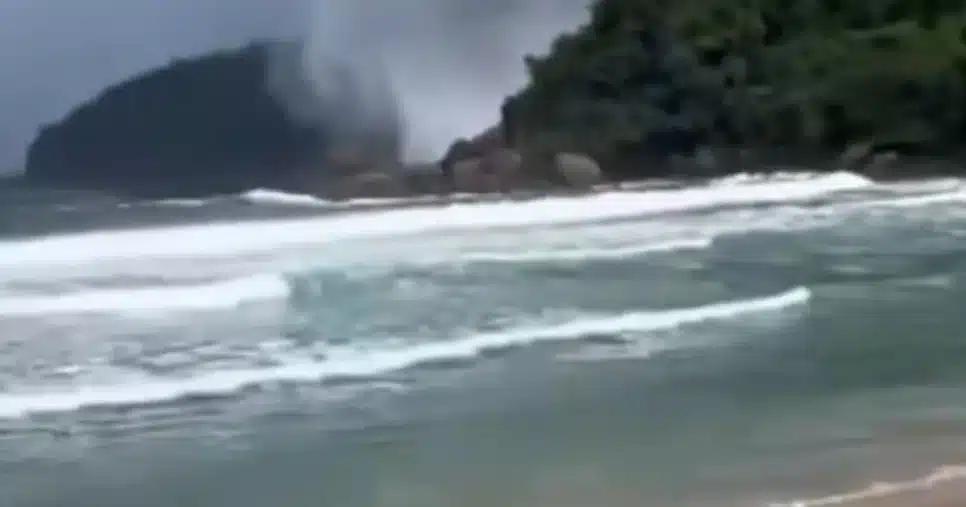 Banhistas na praia de Martinho de Sá, em Paraty, Rio de Janeiro, ficaram alarmados com a formação de uma tromba d’água no último domingo, dia 4. Vídeos compartilhados nas redes sociais mostram o fenômeno, que se caracteriza por uma coluna de água se elevando do mar em direção às nuvens.